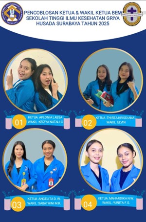 Setelah melalui masa kampanye dan debat terbuka, proses Pemilihan Ketua dan Wakil Ketua BEM Sekolah Tinggi Ilmu Kesehatan Griya Husada Surabaya resmi dilaksanakan pada hari Senin, 16 Juni 2025 mulai pukul 07.00 WIB s/d selesai. Seluruh mahasiswa turut berpartisipasi aktif dalam menentukan pemimpin barunya melalui mekanisme pemungutan suara yang transparan. Pemilihan ini menjadi wujud nyata semangat demokrasi di lingkungan kampus dan diharapkan menghasilkan pasangan pemimpin yang visioner serta mampu membawa perubahan positif bagi mahasiswa.