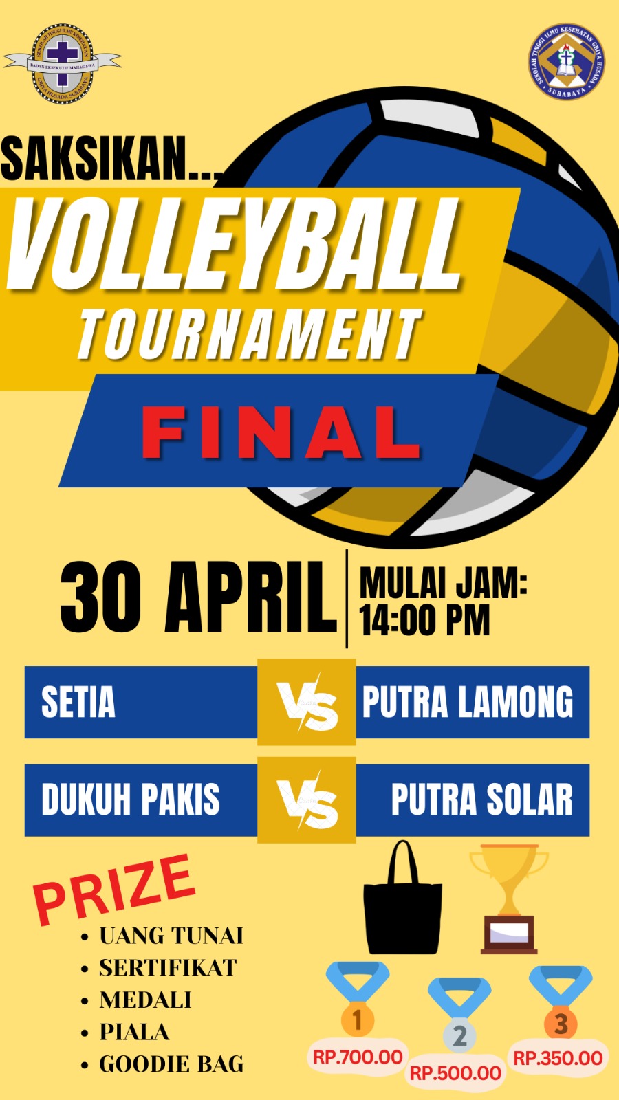 tim bola voli dari berbagai regional daerah dukuh pakis berkompetisi dalam turnamen bola voli antar regional Sekolah Tinggi Ilmu Kesehatan Griya Husada Surabaya.